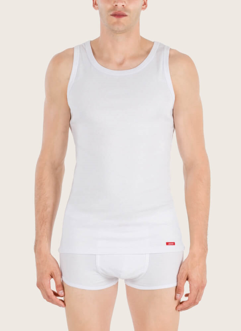 Muška majica na široke bretele je deo naše Basic kolekcije. Izrađena je prema najvišim kriterijumima udobnosti i komfora, pa 100% pamučni sastav pruža koži potpuni ugođaj tokom nošenja. Majica je pogodna za nošenje ispod raznih komada odeće. Postojanog je kvaliteta, a materijal ostaje isti i nakon mnogo nošenja i pranja. Artikal je dostupan u beloj i teget boji.