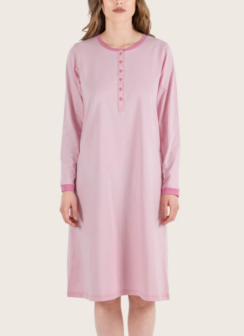 Ženska spavaćica u svetlo roze boji pripada našoj Basic kolekciji, koju odlikuju vrlo nežne nijanse i najkvalitetniji materijali. Spavaćica je 100% pamučnog sastava, što je čini pogodnom i za najosetljiviju kožu, a uz nežan dodir pamuka komforan san je zagarantovan. Udobna spavaćica je vrlo postojanog kvaliteta, pa mekoća materijala opstaje i nakon mnogo pranja. Artikal je dostupan u svetlo roze i indigo plavoj boji.