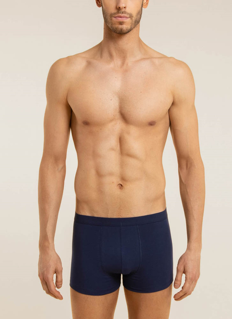 Teget muške bokserice sa lastišem sa Jasmil natpisom većinski su skrojene od finog pamuka, koji ih čini vrlo komfornim za nošenje i prijatnim prema koži. Mali dodatak elastina obezbeđuje im veću rastegljivost, te bolje prianjanje obimu figure. Savremenom muškarcu pružaju udobnost tokom užurbane svakodnevice, sporta i rekreacije, ili sna. Deo su naše Basic kolekcije.