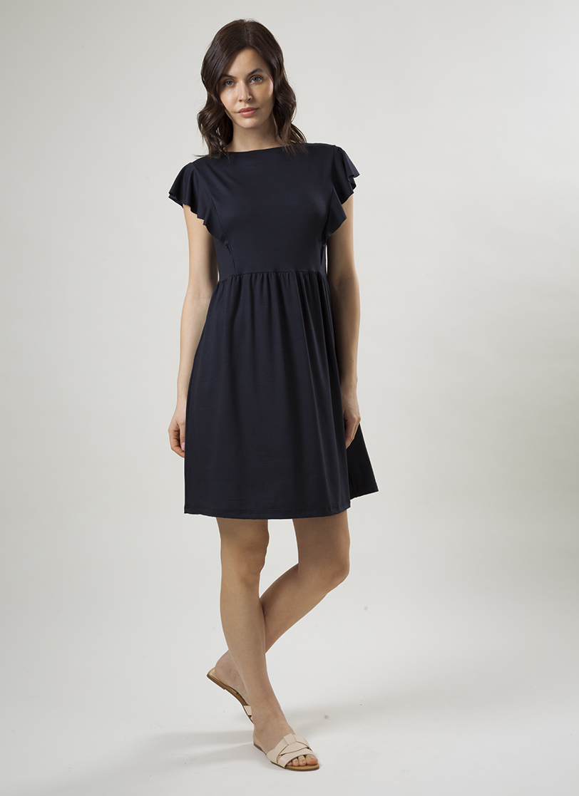 Ženska haljina bez rukava u crnoj boji deo je Outwear kolekcije. Haljina je većinski skrojena od najfinije viskoze, uz mali dodatak elastina, koji je čini rastegljivijom i udobnijom. Nežno pada uz telo i stvara maksimalan osjećaj udobnosti, a karneri sa strane čine je atrakivnom i zanimljivom.