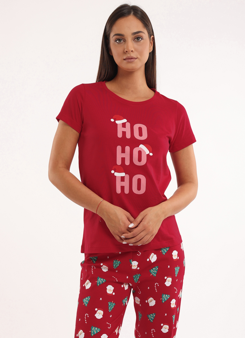 Ženska majica kratkih rukava sa diskretnim a u isto vreme zanimljivim dezenom novogodiših motiva, pripada našoj Holly Jolly Collecion kolekciji. Skrojena od najfinijeg pamuka, koji pružaju nežan dodir telu, a klasičan kroj i kvalitetna izrada, garantuje komfor. Visina modela je 175cm. Model nosi veličinu 38.